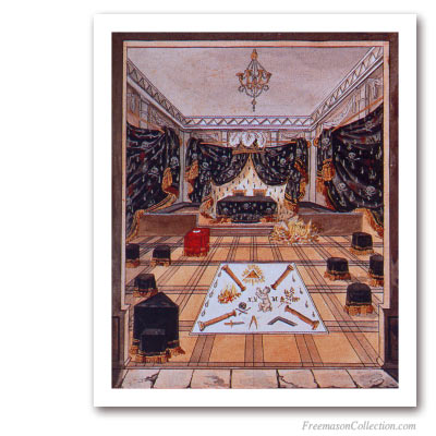 Grand Master Architect Lodge. Early XIXth. Very beautiful portrayal of the 12th Scottish Rite Degree. Scottish Rite. Masonic Paintings